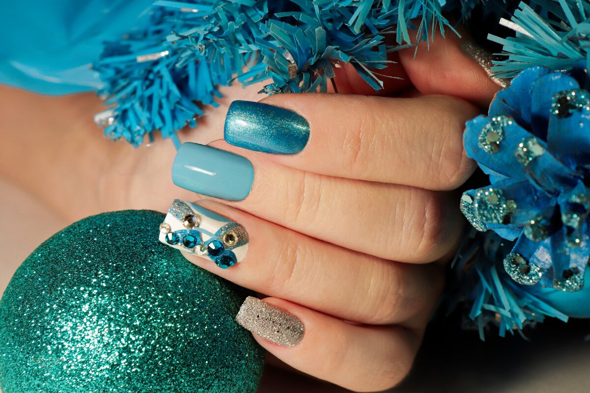 Для по-настоящему зимнего маникюра используйте холодные оттенки: от темно-синего до бледно-голубого. А сделать его ярче помогут блестки или стразы.